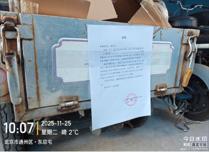 经查,位于九棵树街道蓝东总屯小区银色大安罗纳多牌电动三轮的车辆,涉嫌违反《北京市市容环境卫生条例》第三十五条规定,请您对该车辆自行清理和处置,共同维护良好的城市环境秩序。