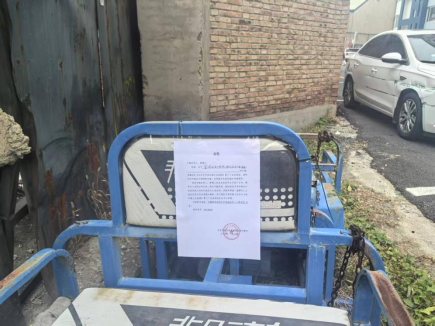 经查,位于九棵树街道蓝调沙龙西区蓝色非凡动力牌电动三轮的车辆,涉嫌违反《北京市市容环境卫生条例》第三十五条规定,请您对该车辆自行清理和处置,共同维护良好的城市环境秩序。
