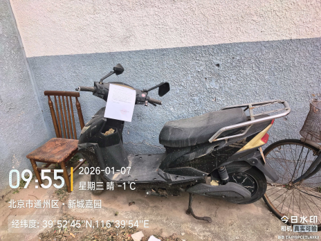 经查,位于新城嘉园小区黑色JINGQI电动自行车 的车辆,涉嫌违反《北京市市容环境卫生条例》第三十五条规定,请您对该车辆自行清理和处置,共同维护良好的城市环境秩序。