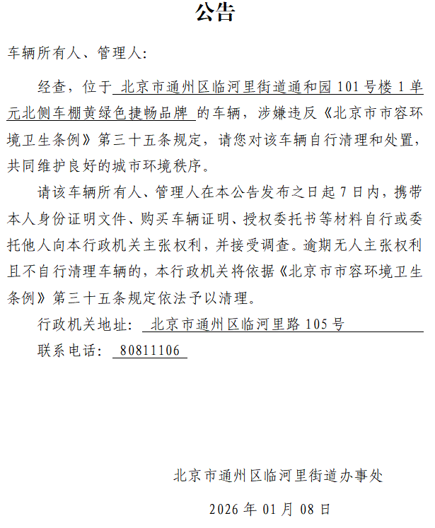 北京市通州区临河里街道办事处废弃非机动车公告18