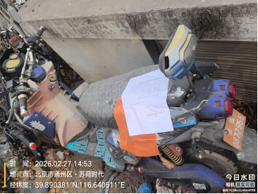 经查,位于苏荷时代小区东侧18号楼三单元前紫色电动自行车(无电池)的车辆,涉嫌违反《北京市市容环境卫生条例》第三十五条规定,请您对该车辆自行清理和处置,共同维护良好的城市环境秩序。