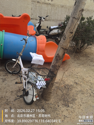 经查,位于苏荷时代小区18号楼三单元前粉白色永久自行车的车辆,涉嫌违反《北京市市容环境卫生条例》第三十五条规定,请您对该车辆自行清理和处置,共同维护良好的城市环境秩序。