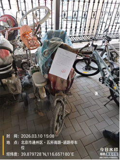经查,位于云景西里南区1号楼北侧停车棚百事例红色电动自行车(无电池)的车辆,涉嫌违反《北京市市容环境卫生条例》第三十五条规定,请您对该车辆自行清理和处置,共同维护良好的城市环境秩序。