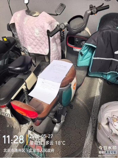 经查,位于北京市通州区潞源街道北京市政府3号楼车棚内的电动自行车品牌:雅迪颜色:黑色++绿色,车牌:北京PL5254,电池:有涉嫌违反《北京市市容环境卫生条例》第三十五条规定,请您对该车辆自行清理和处置,共同维护良好的城市环境秩序。