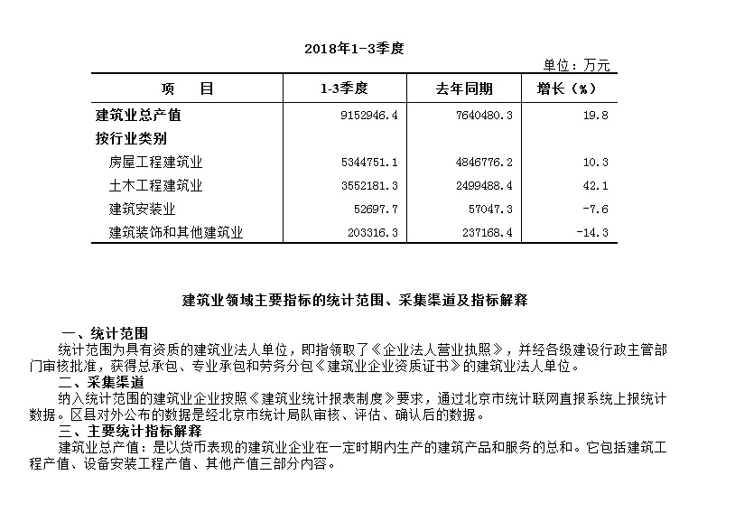 通州区2018年1-3季度建筑业总产值(按行业类别)