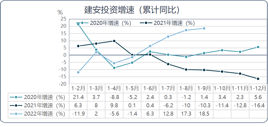 通州区2022年1-9月建安投资增速(累计同比)