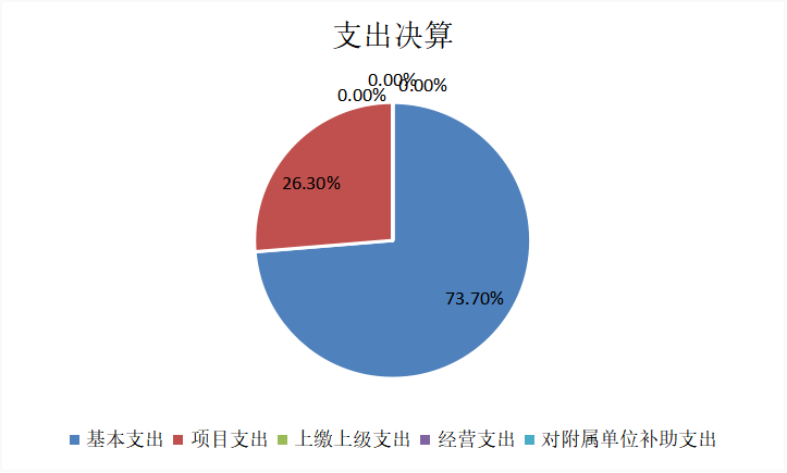 2024年度本年支出合计740.28万元,比上年增加740.28万元,其中:基本支出545.57万元,占支出合计的73.70%;项目支出194.71万元,占支出合计的26.30%;上缴上级支出0.00万元,占支出合计的0.00%;经营支出0.00万元,占支出合计的0.00%;对附属单位补助支出0.00万元,占支出合计的0.00%。