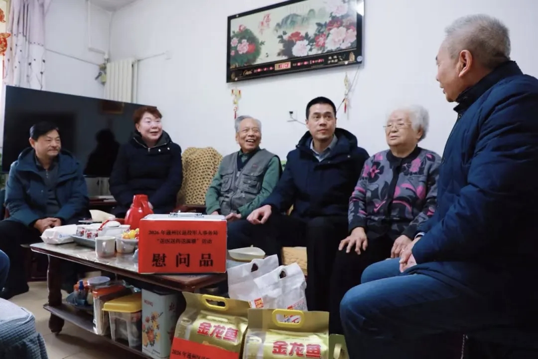新春将至,暖意渐浓。在2026年丙午马年春节来临之际,通州区政府党组成员、副区长韩松,区退役军人事务局党组书记钱海潮,局长孙雪松,副局长刘明晨、相洪河一行开展春节前走访慰问暨“送医送药送温暖”活动,登门看望退役军人,为老同志们送上慰问品与新春祝福,切实把组织的温暖送到他们的心坎上。区军休所工作人员党支部书记、所长关志军,区光荣院党支部书记苏国军等陪同慰问。