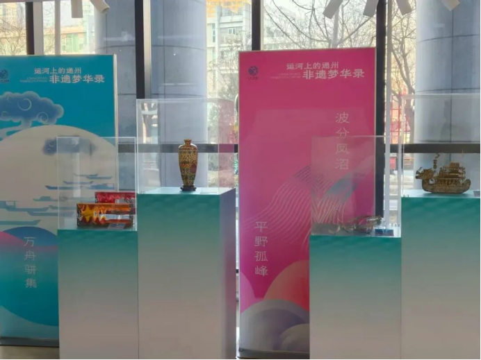 “古韵新声 通州非遗梦华录”展览在通州区文化馆一层中庭启幕。此次展览采用“一景一非遗”的独特形式,通过传统非遗传承人与当代设计师的隔空对话,巧妙融合“通州八景”的文化底蕴与非遗艺术的创新表达,让观众在领略匠心之美的同时,沉浸式体验通州历史风物的独特魅力。