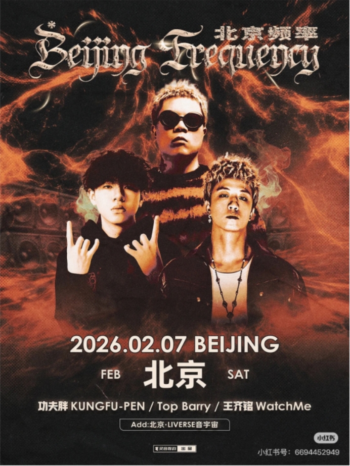 王齐铭WatchMe、功夫胖KUNGFU-PEN、TopBarry三大实力rapper同台集结,用说唱炸穿音宇宙,解锁城市肌理里的硬核回响!可在秀动APP进行购票。