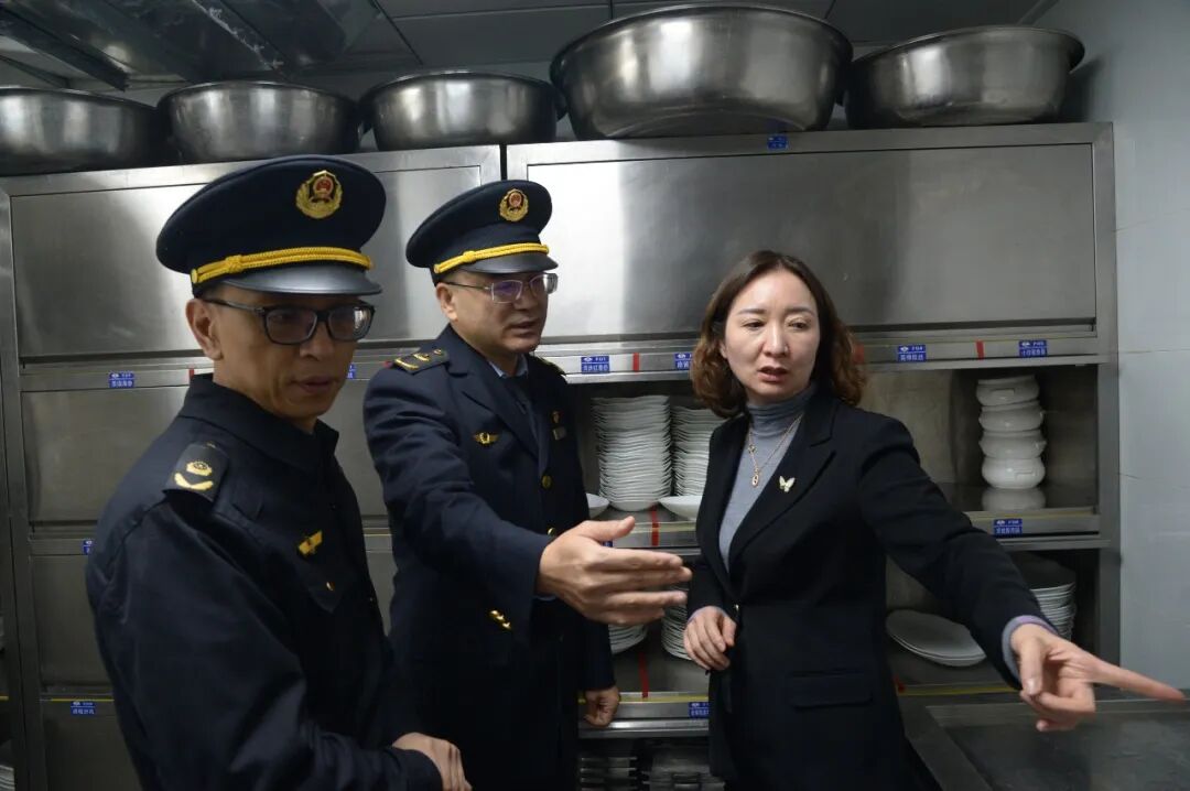 在存放食品原材料的库房,执法人员拿起一瓶摆放整齐的酱油,仔细核对瓶身的生产日期和保质期,确认无过期、变质后查阅进货台账,并不时询问:“这些食材都是从哪里进货的?生产日期和保质期都是哪一天?”经过逐一核对资质文件、进货单据与食材实际信息,确认食材来源可溯、资质齐全后,再次叮嘱道:“节日期间备货要适量,既要保证年夜饭供餐需求,也要避免食材积压变质,所有食材使用前还要再仔细检查一遍,有过期、变质的一定要及时处理,千万不能上桌,守住食品安全的底线。”