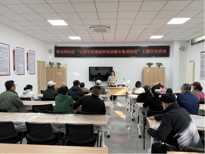为了进一步提高辖区内居民的诚信意识,了解国家相关部门对于加快推进社会诚信建设的有关指导意见,使居民更好的投身于社区诚信氛围的营造中,11月21日欣达园社区在居委会活动中心举办了一次国家关于完善守信激励和失信联合惩戒制度的主题宣传活动。