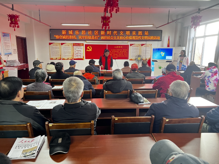 为进一步深化新时代基层理论宣讲工作,全面、系统且深入地学习习近平新时代中国特色社会主义思想,在基层社区营造出学习贯彻党的二十大精神的浓厚氛围,让党的先进理论和重要精神在基层落地生根、开花结果。于11月10日,新城乐居社区新时代文明实践站精心组织并开展了一场以社会主义核心价值观中诚信价值观为主题的宣传文明实践活动。