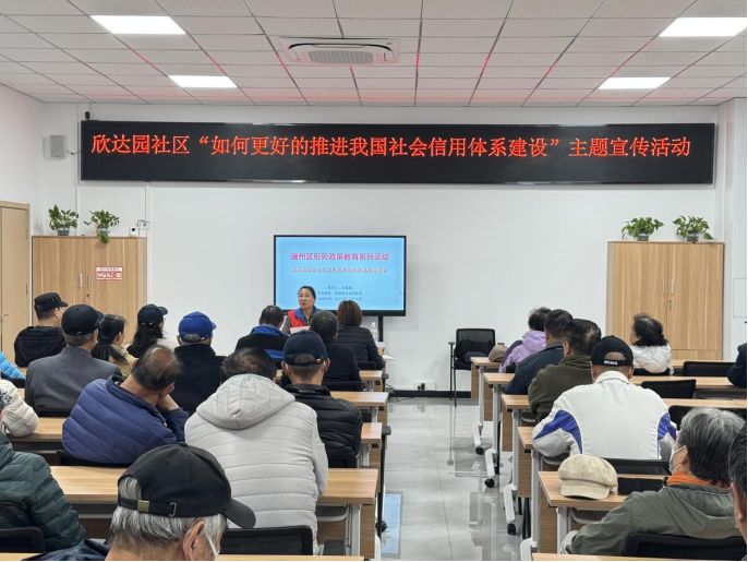为了使辖区内居民了解国家相关部门对于加快推进社会诚信建设的有关政策,使居民更好的投身于社区诚信氛围的营造中,进一步提高居民诚信意识,12月18日欣达园社区在居委会活动中心举办来一次国家关于“如何更好的推进我国社会信用体系建设”的主题宣传活动。